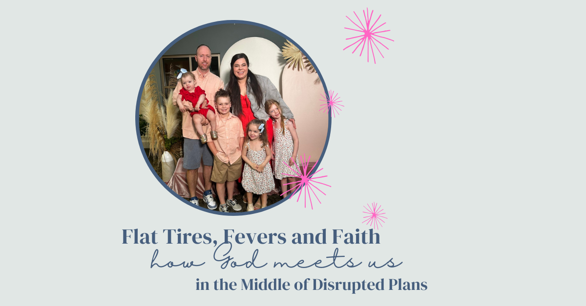 We had a kid with a fever, my car had a flat tire and my husband had worked 48 straight with zero sleep. This Sunday wasn’t going to look like everyone going to church together. If I’m honest, in this season, everyone going to church together feels more like a win than an every week occurrence. We may not have all been at church (only I went) but my husband and I had a great heart to heart with one of our kids about God, then that opened the door to conversation about our mission and vision as parents and a check-in on how it was going. Those conversations led to intentional time praying while getting ready. I may have arrived late to church but God was with my family all morning.